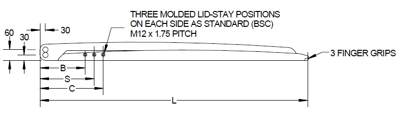 - Incorporates 3 in-moulded lid-stay positions as standard, for the easy attachment of a lid stay using a through bolt