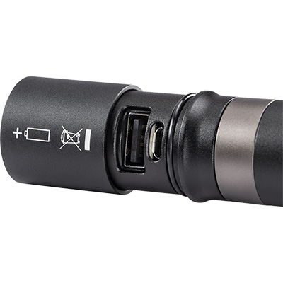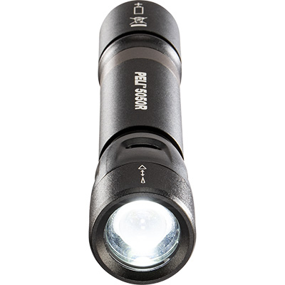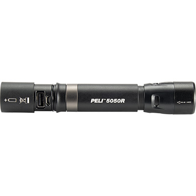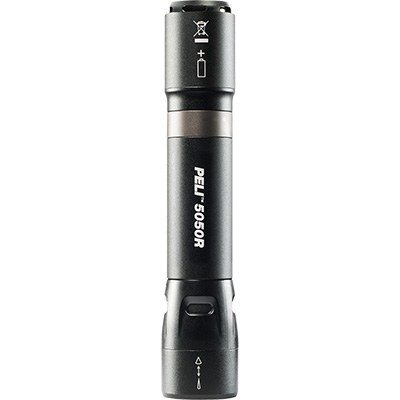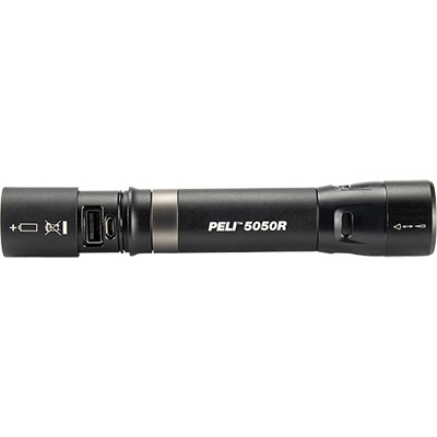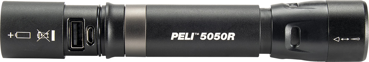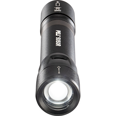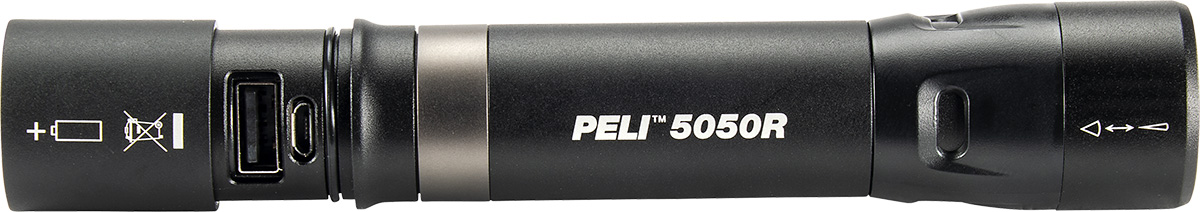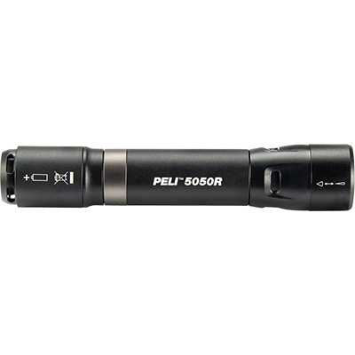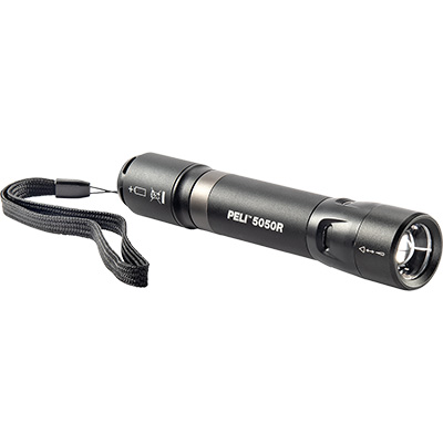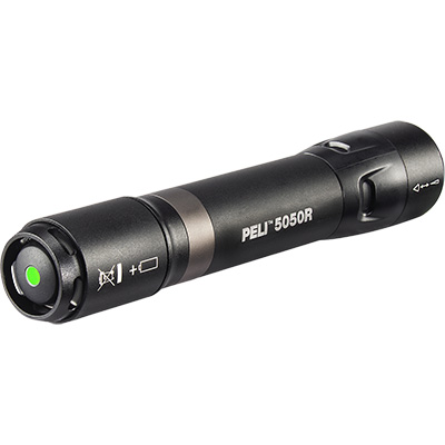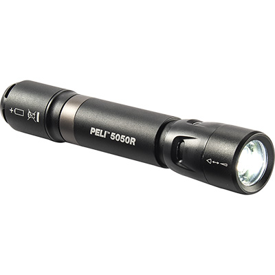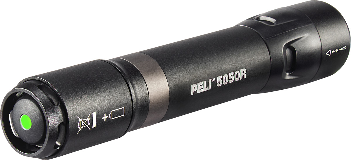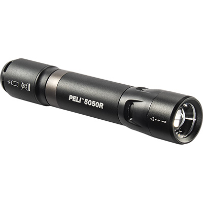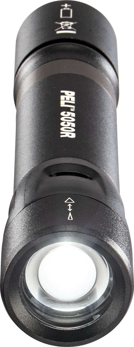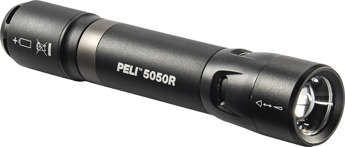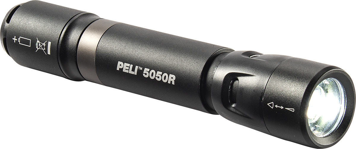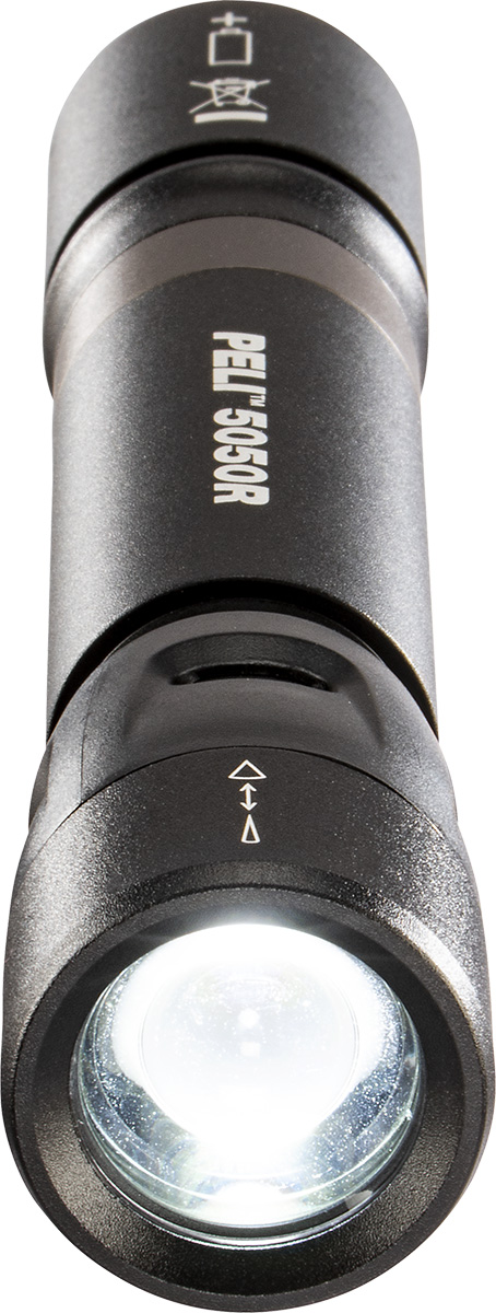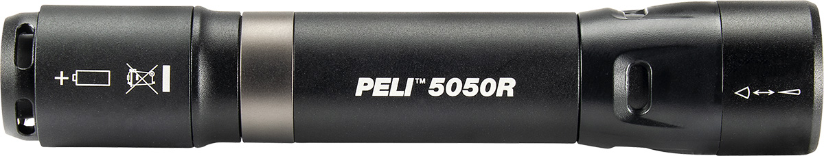 Get local to long distance in a slide. The new Peli™ 5050R flashlight features flood to spot technology: Flood position projects a wide beam to illuminate your work area and spot beam for a long distance focused beam.