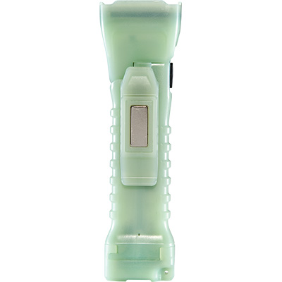 The 3410M (magnet version) is the ultimate compact work light. Molded from “glow in the dark” photoluminescent material, this light is easy to find even when it’s off. The 3410M is equipped with both a spot and flood LED for close-up as well as distance, so you can have wide area light in the immediate work area and still penetrate darkness hundreds of yards away. It can be activated to run one or both LEDs with 3 levels of brightness. The articulating head and built-in clip allows the light to be directed wherever it is needed, while a heavy duty magnet allows the light to be snapped to steel surfaces.