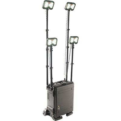 “M” for mobility, the 9470M is built with a set of XL wheels providing easy transport over rough terrain. The all new and extremely powerful 9470M Remote Area Lighting System (RALS) provides convenient and ecologically responsible alternatives to wasteful generator powered lights. Engineered with the Intelligent Control System which calculates and displays current battery life. Additionally, it allows the user to regulate the intensity of the light, choose the desired run time or select from three pre-set power levels. Built with versatility in mind, the 9470M RALS features four telescopic masts (each extends to nearly 6 feet) and four 360° articulating light heads. The system's next-generation LEDs combine to radiate up to 24,000 lumens (6,000 per light head). Powered by rechargeable batteries, the system offers remote activation via a Bluetooth app which allows varied light output from 100% - 0%. For extended applications, the 9470M can run continuously on wall power. The ability to leave on charge allows you to always be prepared. A 12 volt power port including a dual USB adapter provides power for many peripheral devices. Built self-contained in a tough-as-nails Peli case, the 9470M is compact and includes the multi-terrain trolley with a retractable pull handle and stainless steel ball-bearing 1.5 inch polyurethane wheels.
